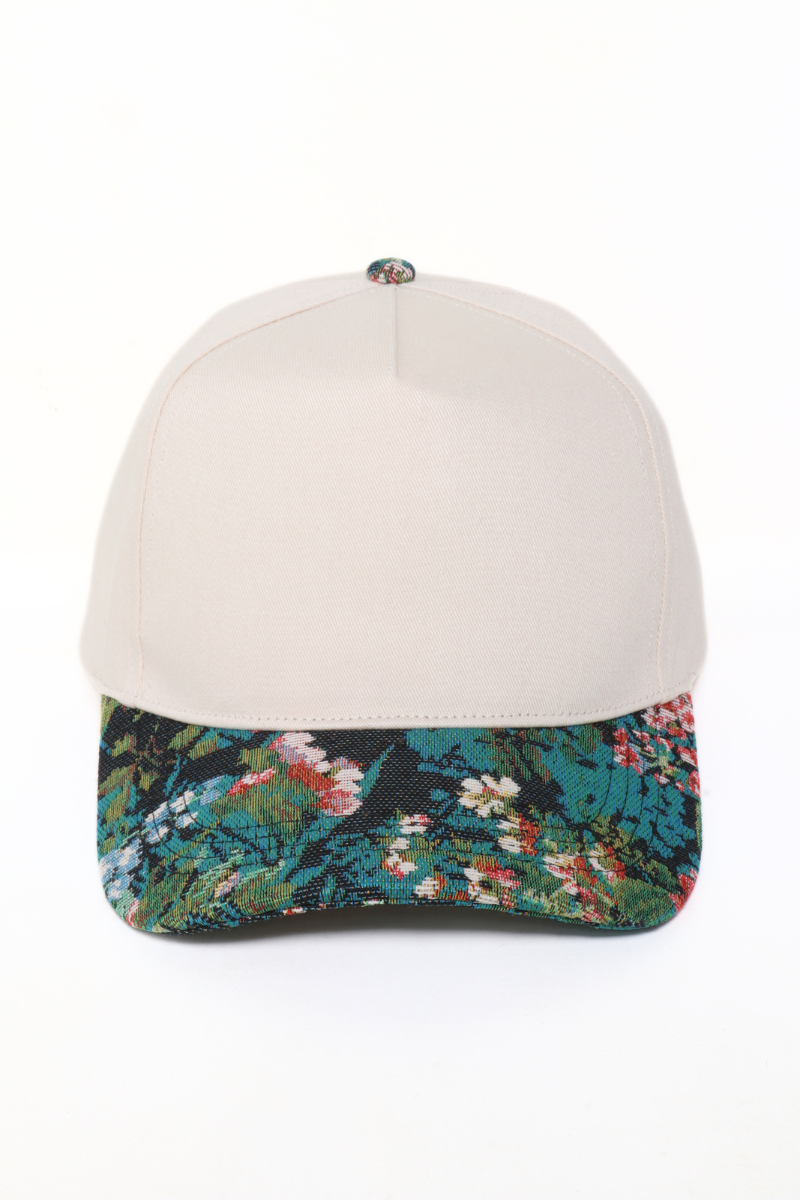 Floral Print Brocade 5 Panels Two Tone Baseball Cap
