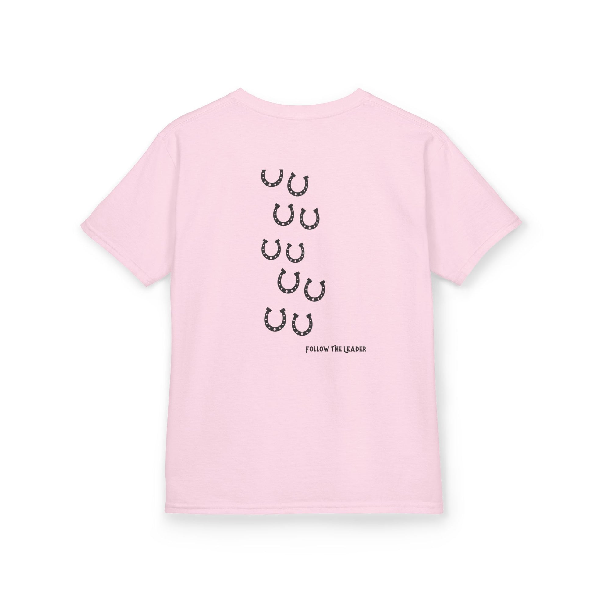 With every dusty hoofprint and every faithful stride, the Follow the Leader tee is a reminder that we’re not just chasing dreams — we’re following something greater. Featuring a striking horse hoof graphic and vintage Western lettering, this tee is for the girls who ride with purpose and lead with faith.