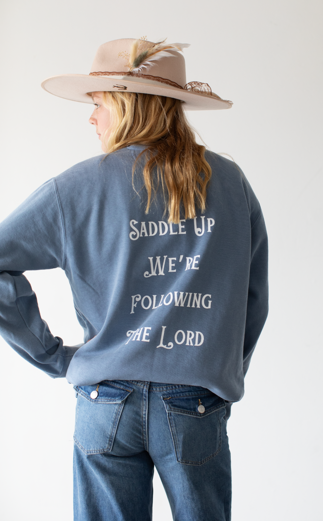 This one’s for the cowgirls who ride with purpose and pray with power. The Saddle Up We’re Following the Lord tee blends bold western spirit with unwavering faith — because around here, we don’t ride alone.